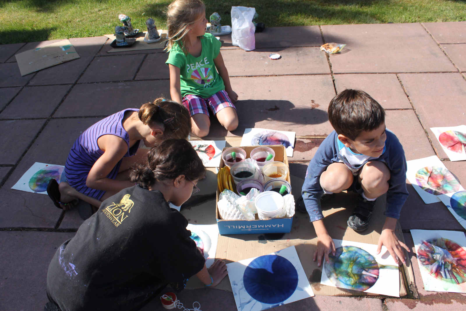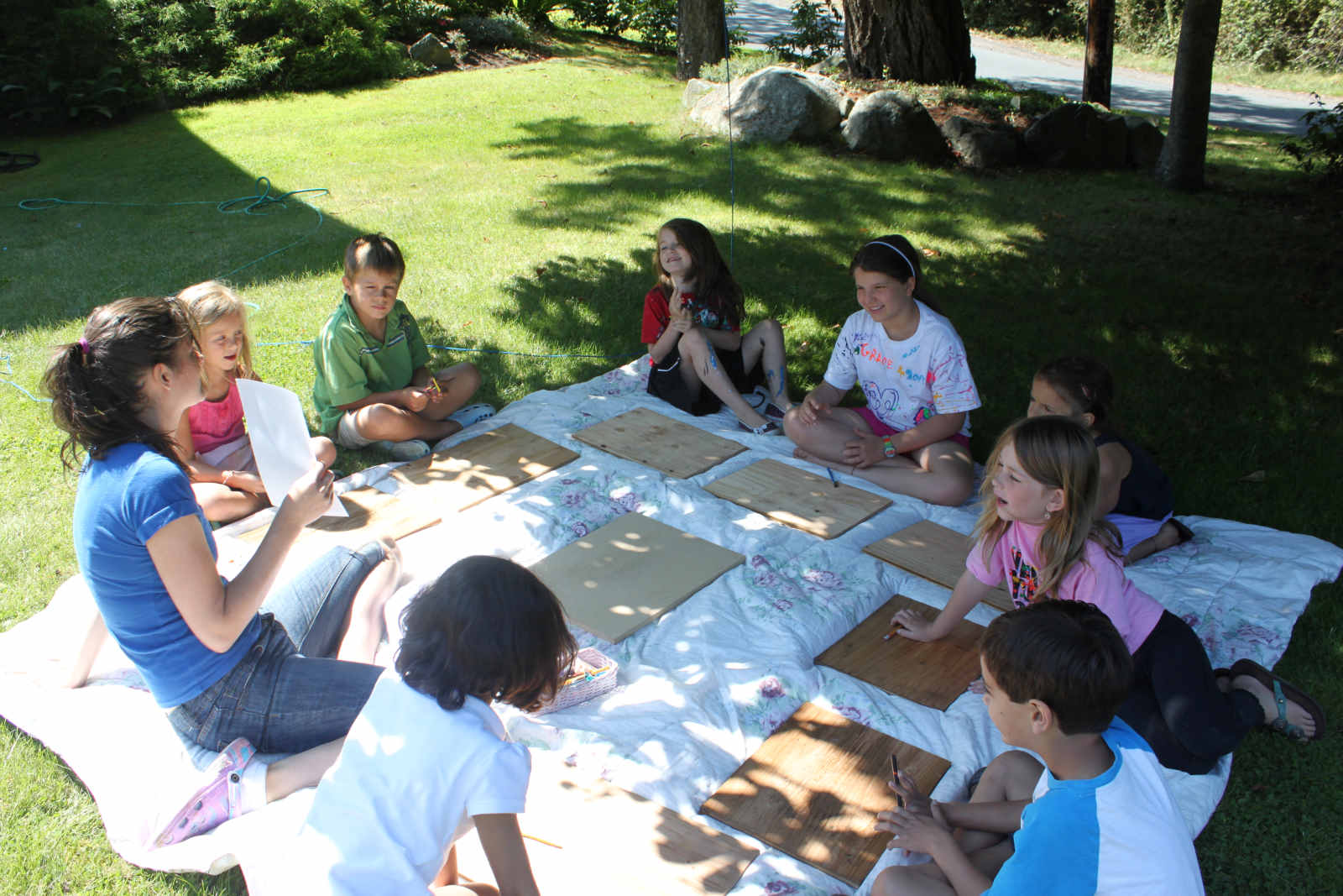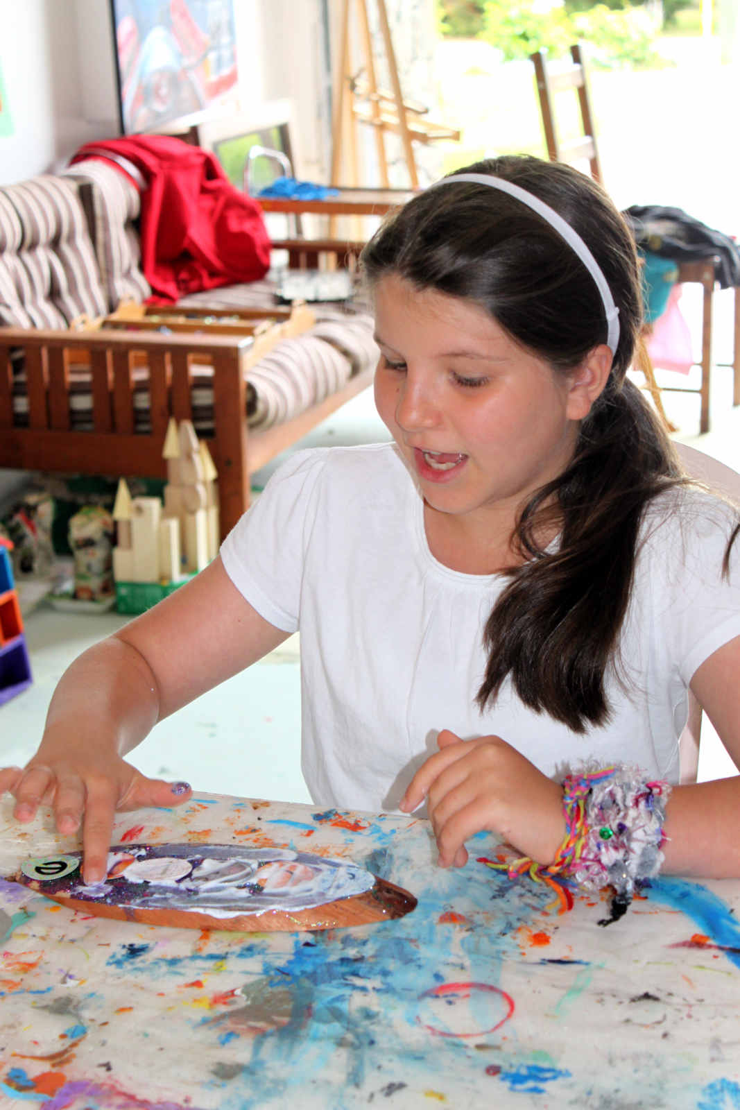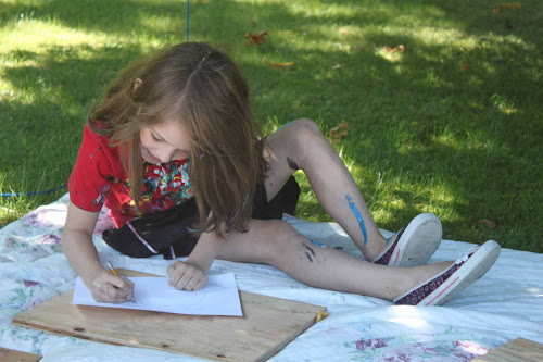 8 hard working young artists gathered at Shyness and Bloom this August. We had so much fun making squirrels, name plaques, cardboard fish, beach collages, splatter-paint pine cones, canvas paintings, plywood and nail art, and more. So incredibly fun. Wish it didn't have to end!