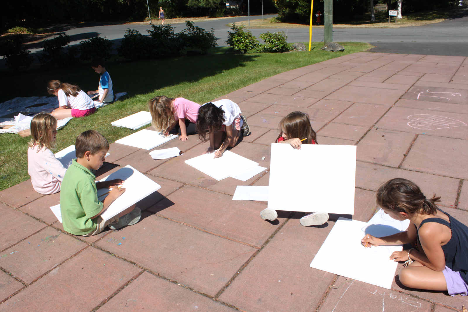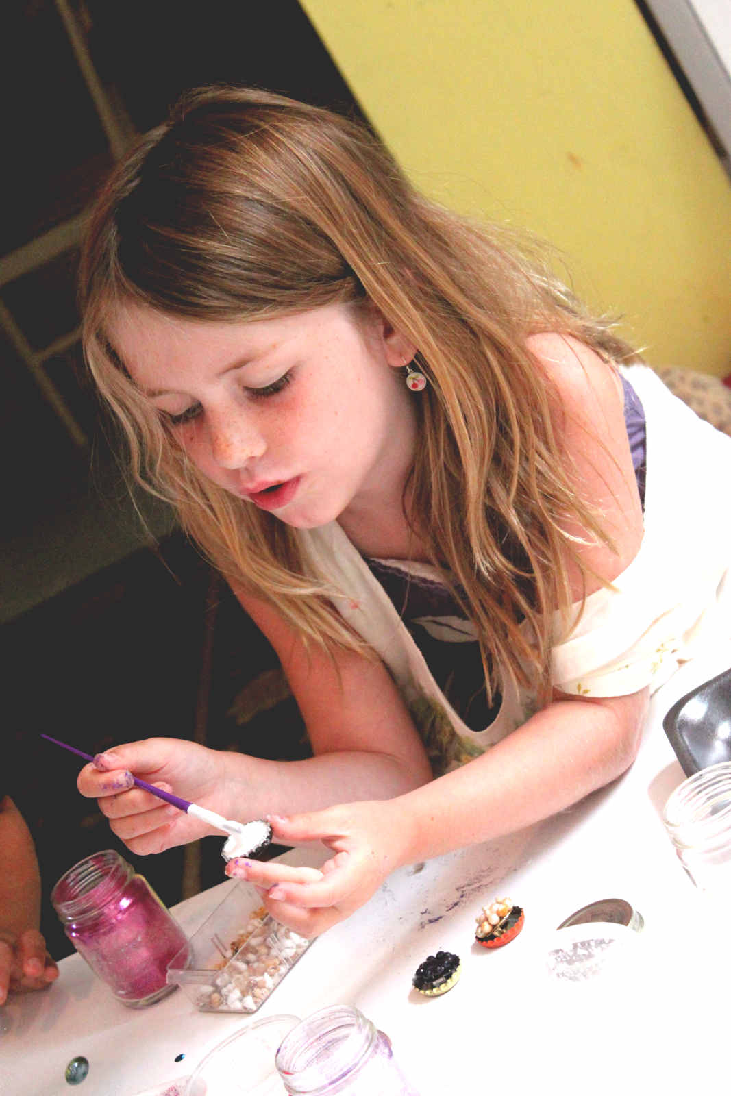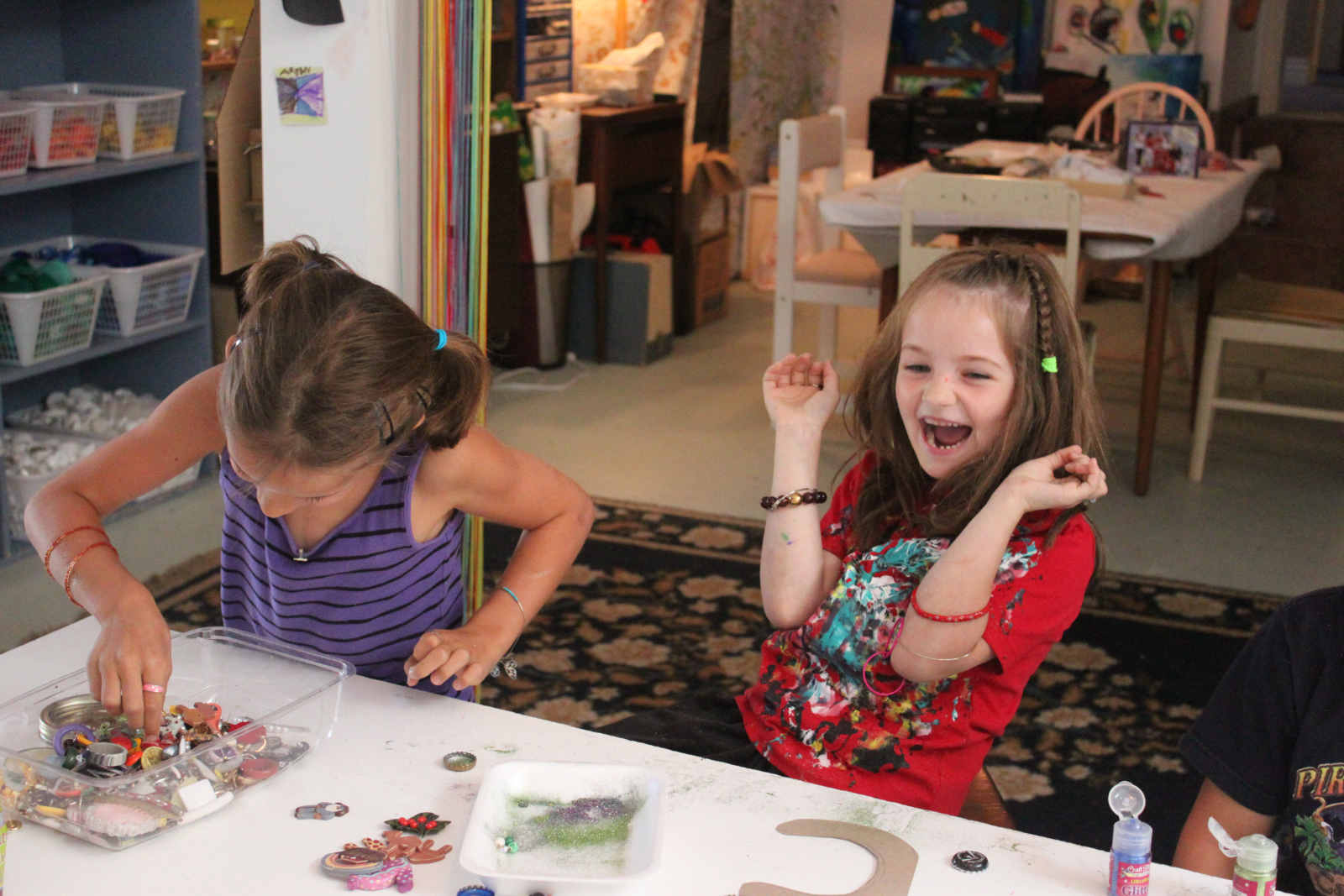 8 hard working young artists gathered at Shyness and Bloom this August. We had so much fun making squirrels, name plaques, cardboard fish, beach collages, splatter-paint pine cones, canvas paintings, plywood and nail art, and more. So incredibly fun. Wish it didn't have to end!