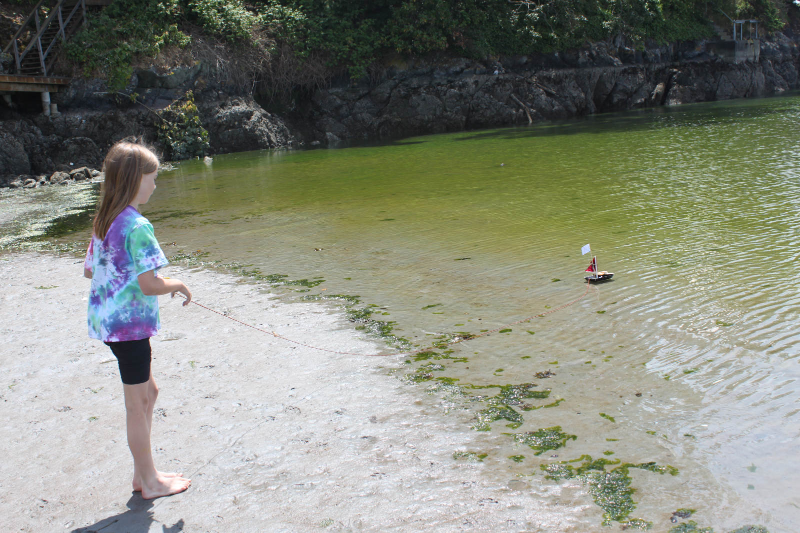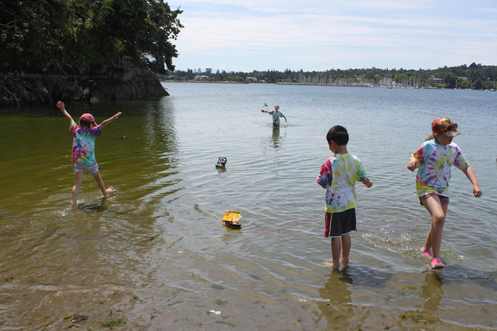 On our first day of camp, we all got so excited about making boats. We spend hours fixing up all the little details on our mini ships. There were masts, rudders, crow's nests, flags, oars, cannons, telescopes, sails, steering wheels, treasure, planks, maidens in distress, pirates, and crew… We had to figure out how to make out boats balance, catch wind, and stay afloat. We floated them down at Telegraph Bay, and then made major repairs and brand new fleets and sailed again in Cadboro Bay the next day. And we can now think of ourselves as experienced naval engineers!