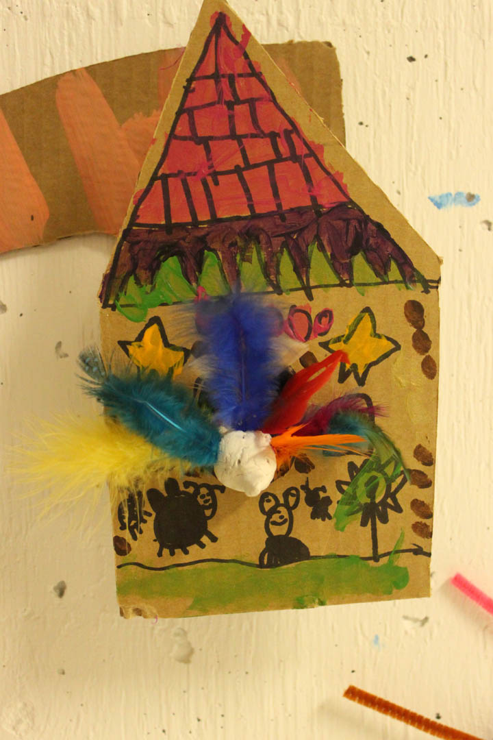 With a focus on creating pattern, working with recyclables, and learning some new cutting skills, we began a project to make decorative birdhouses.