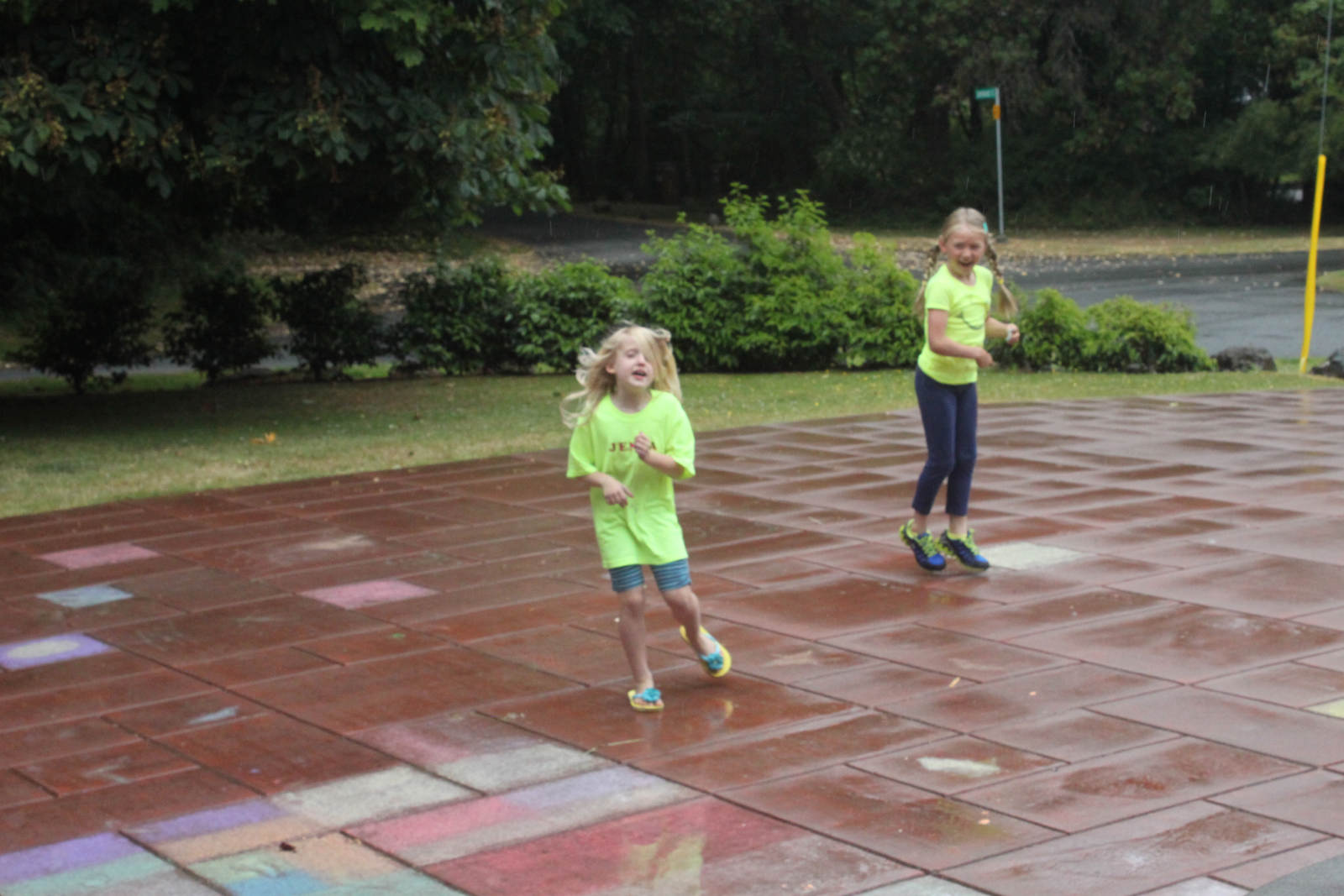 It is so great living so close to 2 different beaches. And such a perfect distance from the sun. And even we, at art camp, can have fun in the rain.