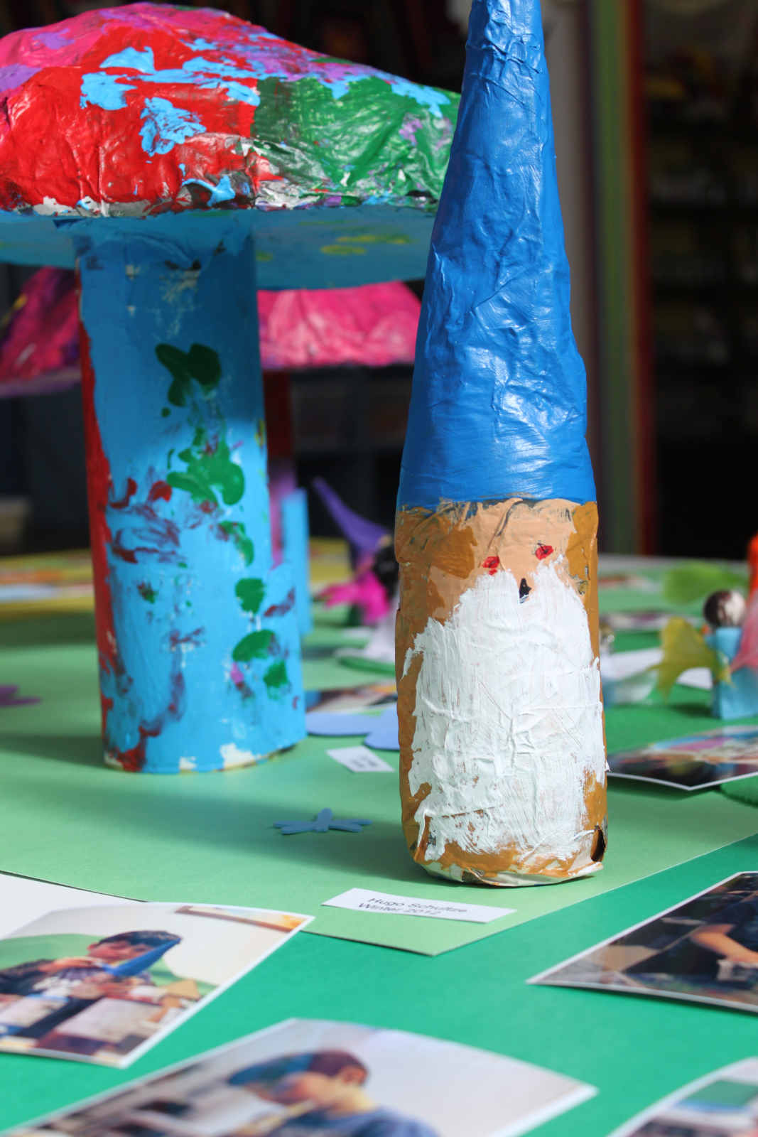 MB and C drew these pictures of gnomes before they moved on to the paper mache.