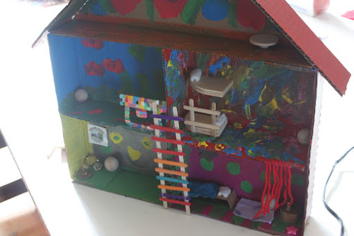 Houses seem to be one of the most fun things to make here. Sifting through all the tidbits, we have and endless supply of things to make furniture, decorations, whatever we could ever imagine....