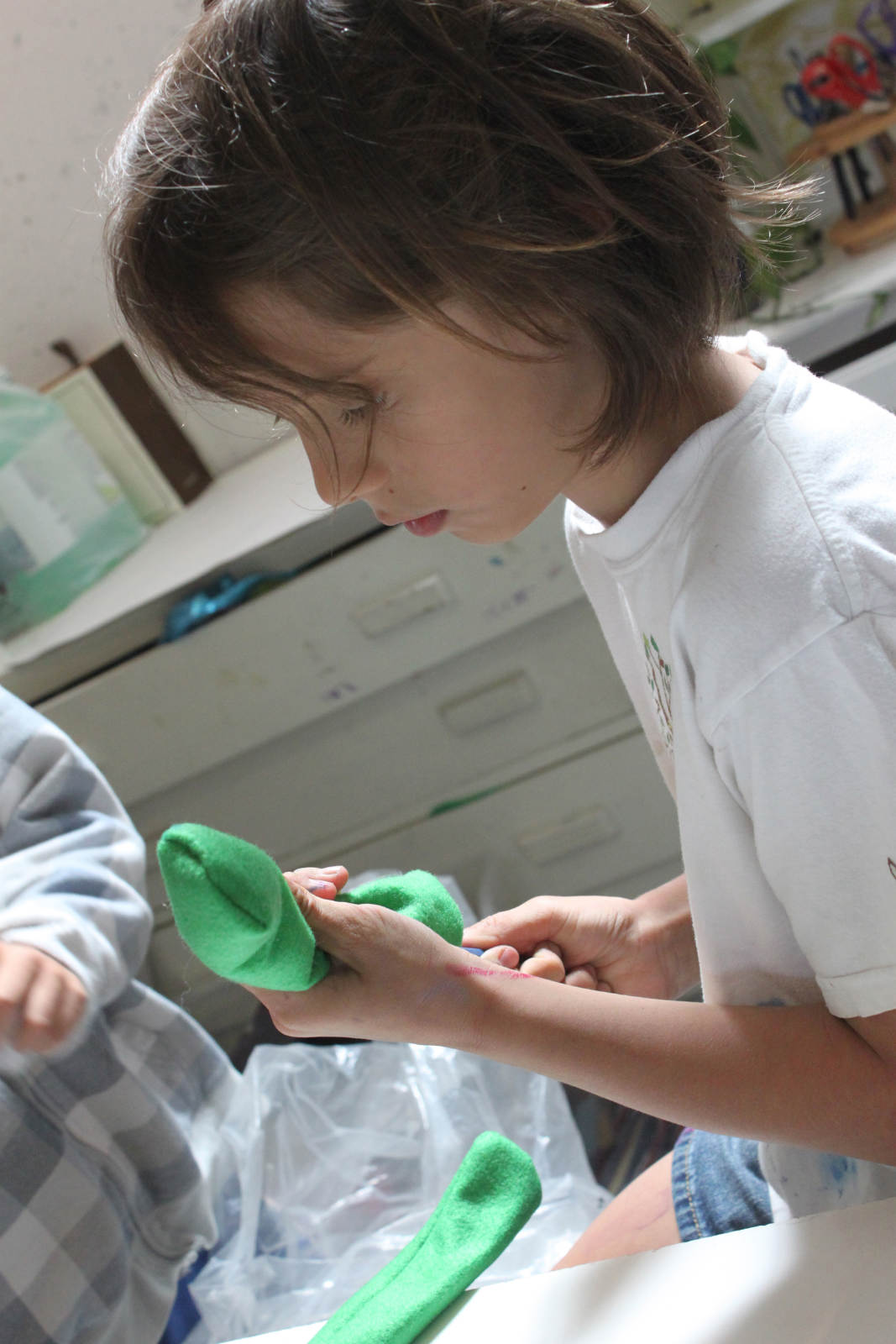 With a small number of kids, you can do these time consuming, and tedious projects... and it was, of course, a big hit! I asked the kids what their favourite project of the week was, and it was this. The stuffies. I think they would have done this every day if there wasn't so much other stuff to try!