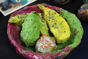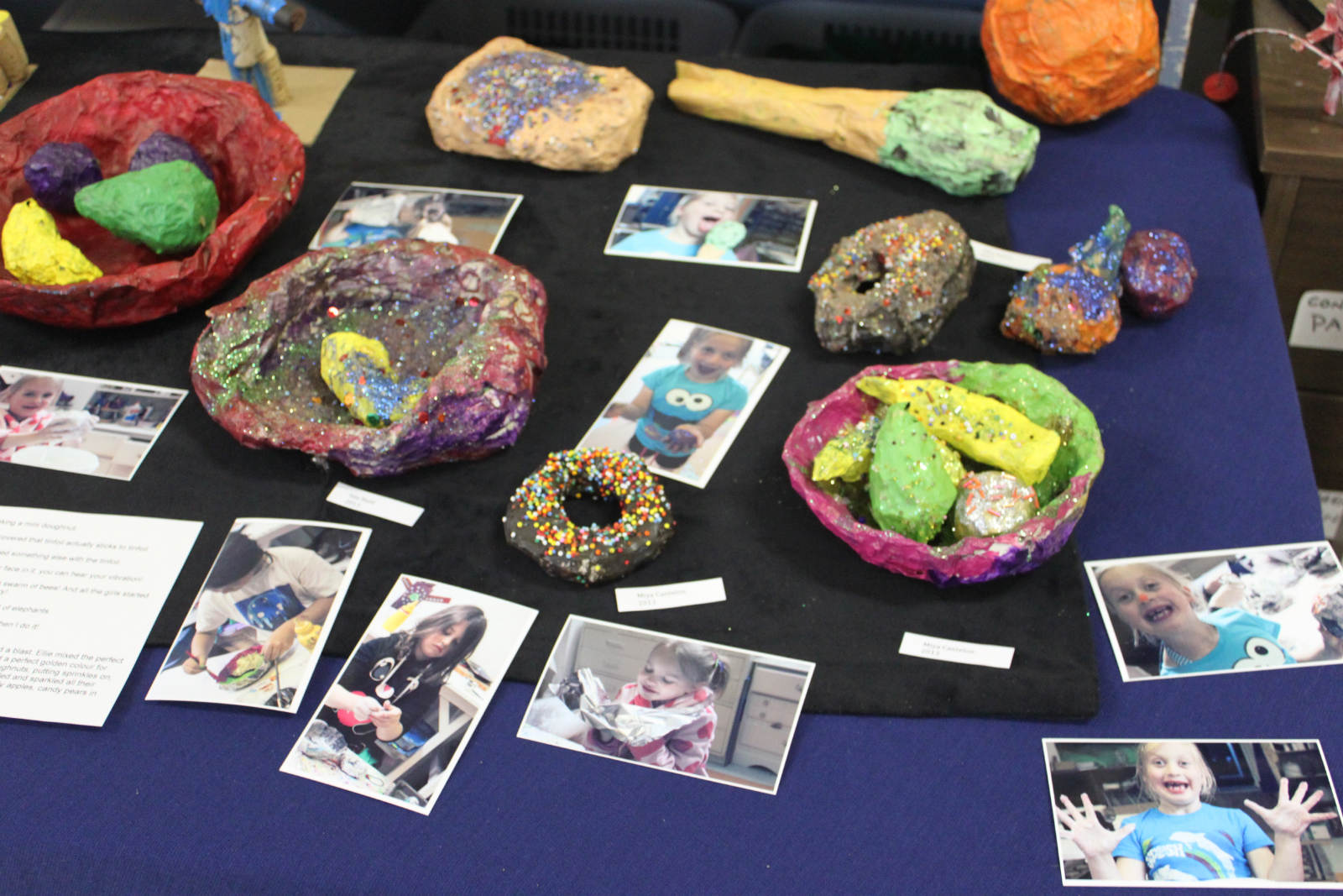 When it was time to paint, the girls had a blast. Ellie mixed the perfect mint colour for her minty ice cream, and a perfect golden colour for her cone. The girls had fun with their doughnuts, putting sprinkles on, and didn’t stop at doughnuts! They sprinkled and sparkled all their fruit too. Candy fruit! Candy bananas, candy apples, candy pears in candy bowls.