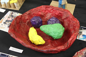 The girls scrunched and crunched up the tinfoil to make their shapes for all sorts of different food. The original idea was a fruit bowl.