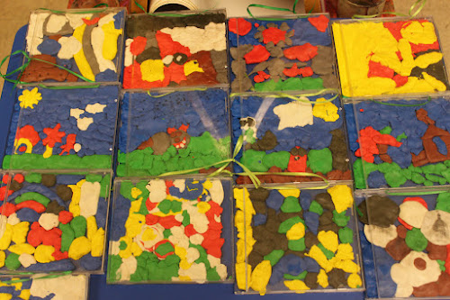 Look at this album art! Bunnies, hearts, dolphins, horses, T-rexes, ninjas, underwater scenes, rainbows, houses…..These adorable kindergarteners had a fun first experience with plasticine in their classes. Some had never tried it before, and they all learned how to shape and mold pieces into balls and ropes and how to squish it flat. They worked hard at making a picture inside the case, and making sure it was flat enough so that the case could close. Lots of finger muscles needed for this one!