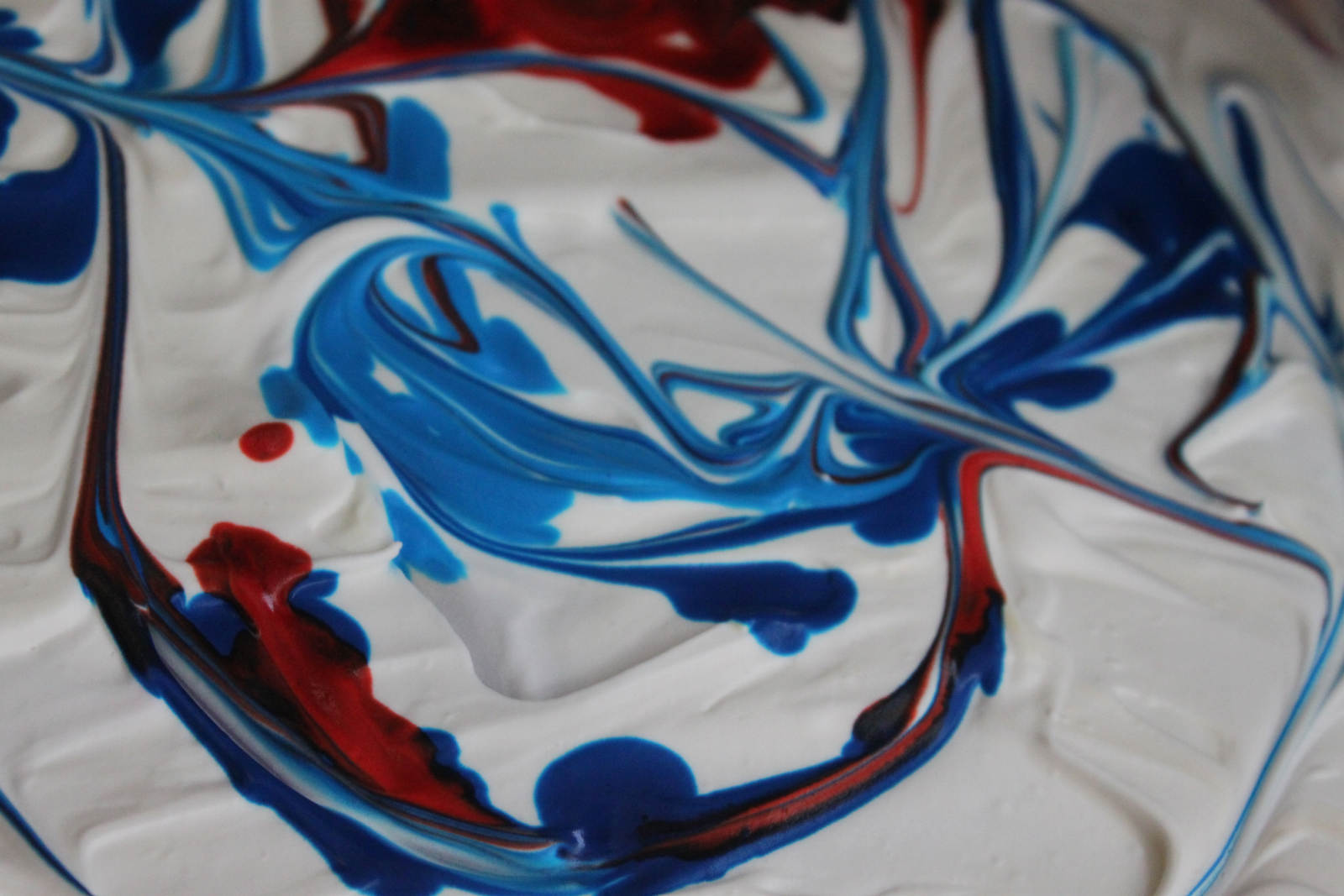 As he mixed the dye into the cream, Finn immersed himself into an imaginative world of power and destruction. He generously dripped red dye over a peak in the shaving cream, creating a beautiful volcano. And then when it came time to swirl the colours with the stick, he became the force itself!