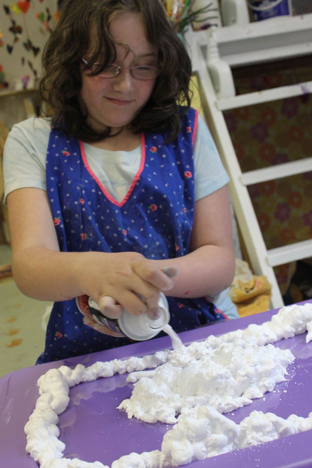 Even her dad got his hands in the mess when he came to pick her up, and by the end of class, Abi was begging him to get some shaving cream so that they could do it together at home.