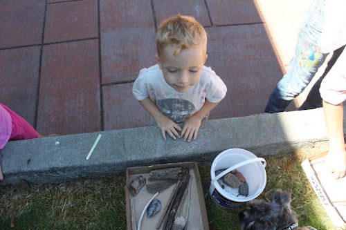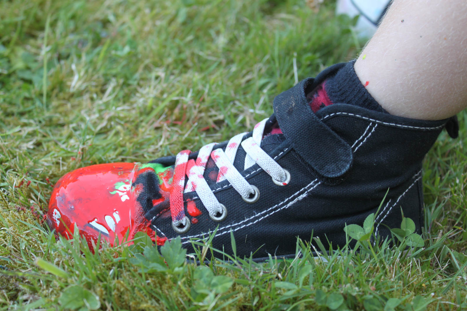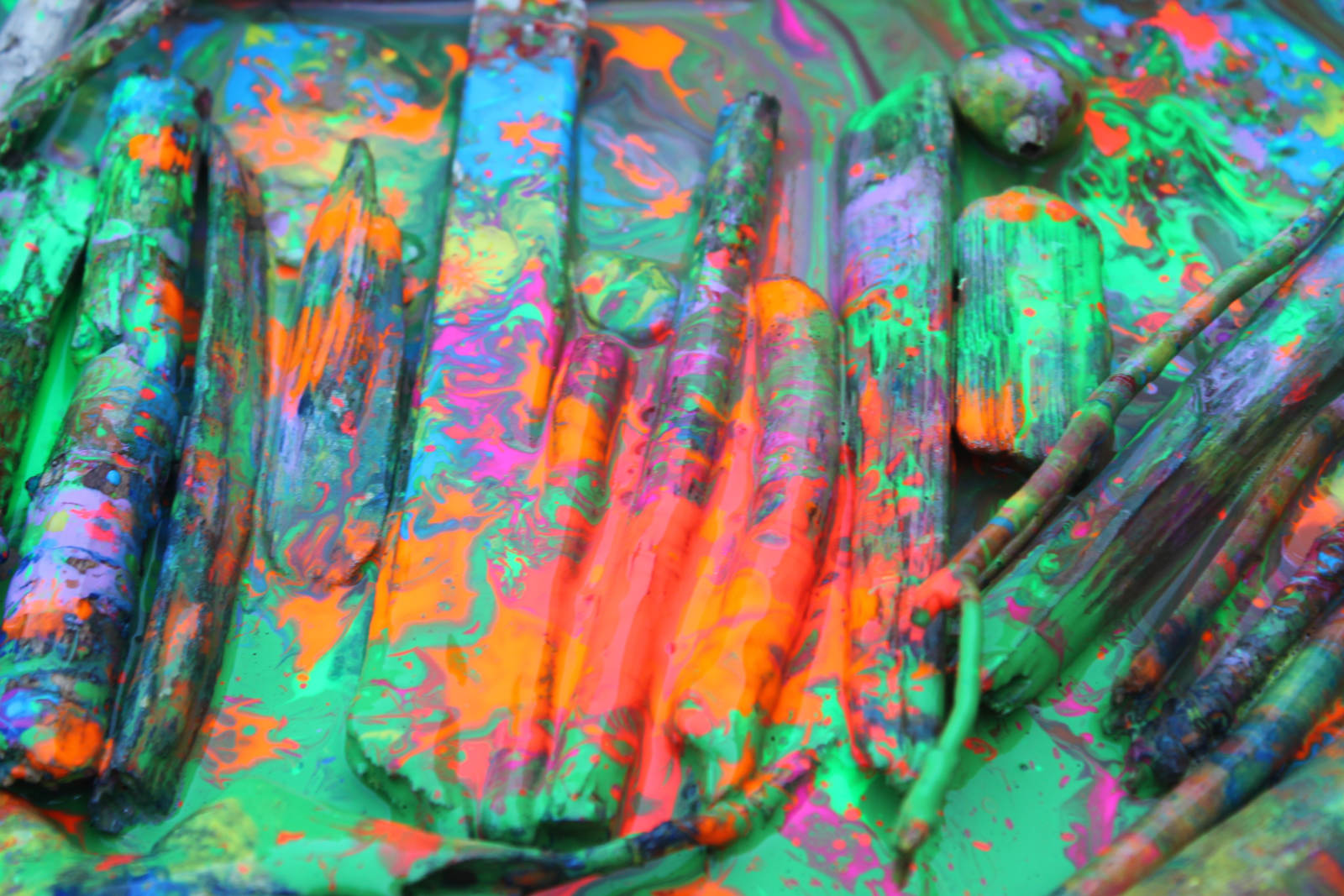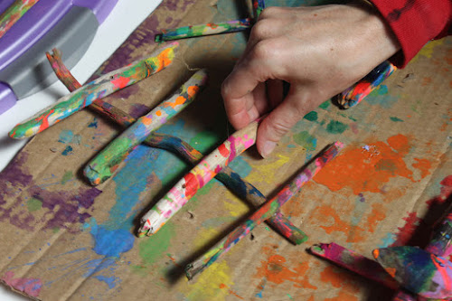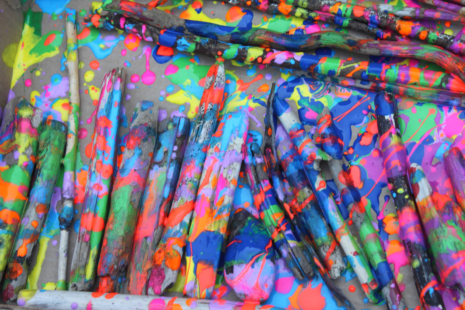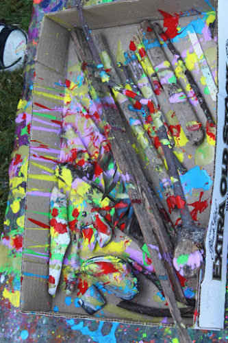 Splatter paint some sticks. Get a glue gun, and presto! Really cool artifacts.