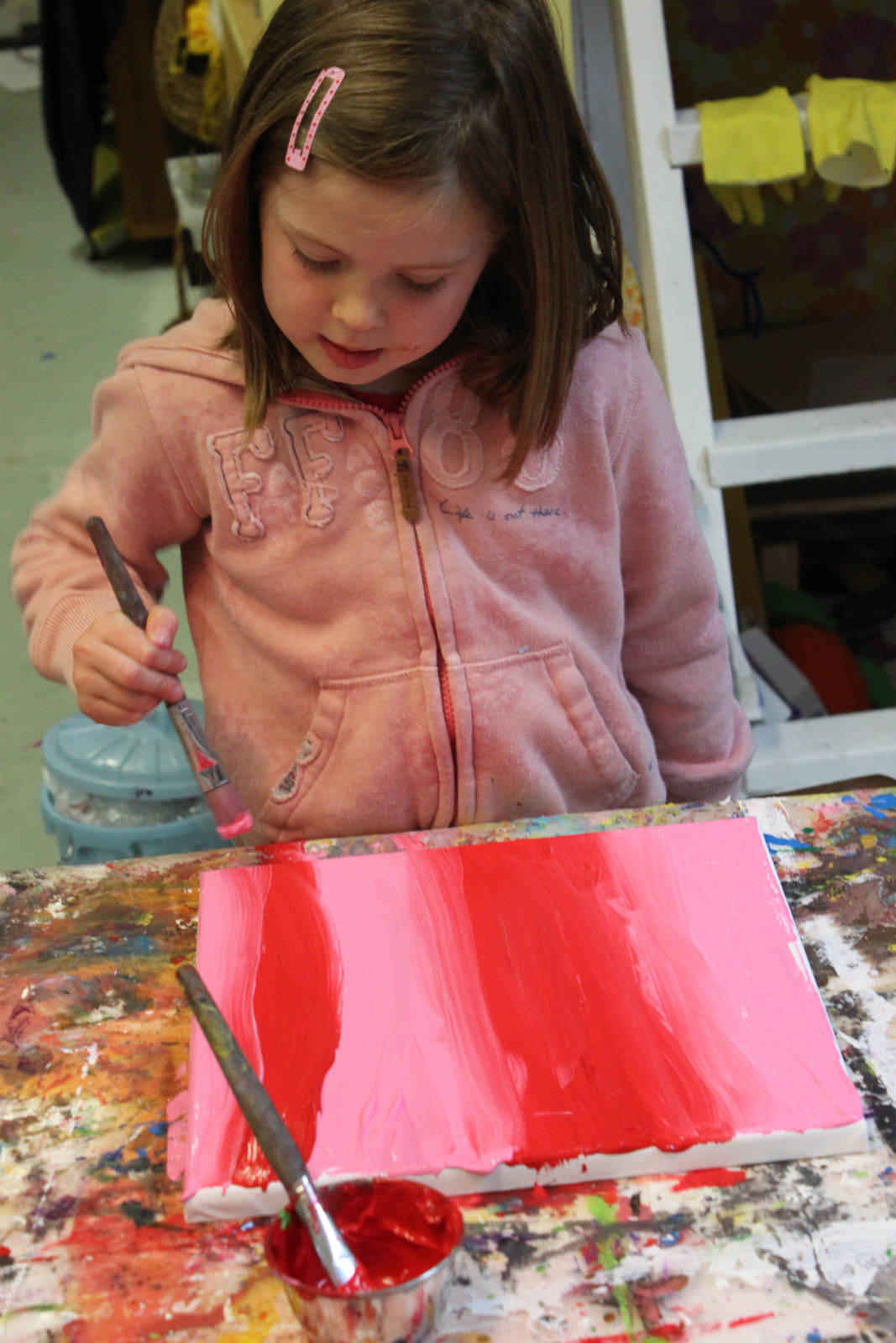 Evie and Isla did stripes of their colours. And did their best to get their colours to blend where they met.