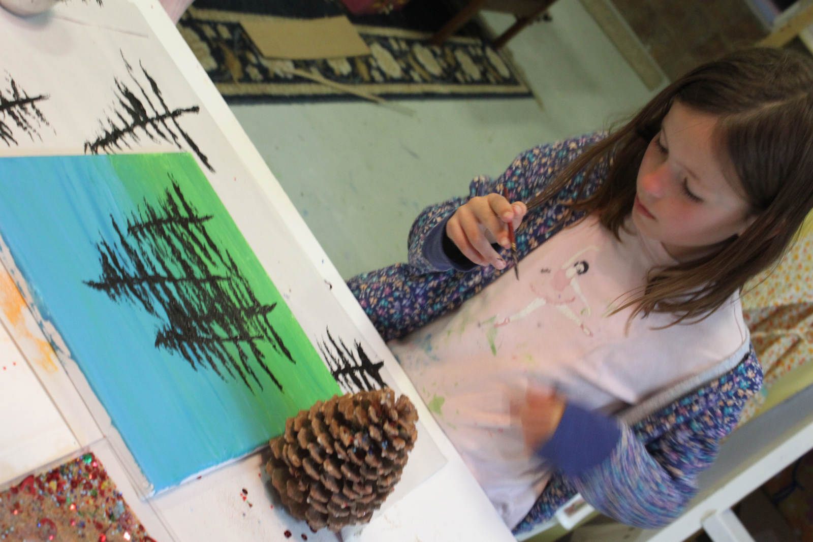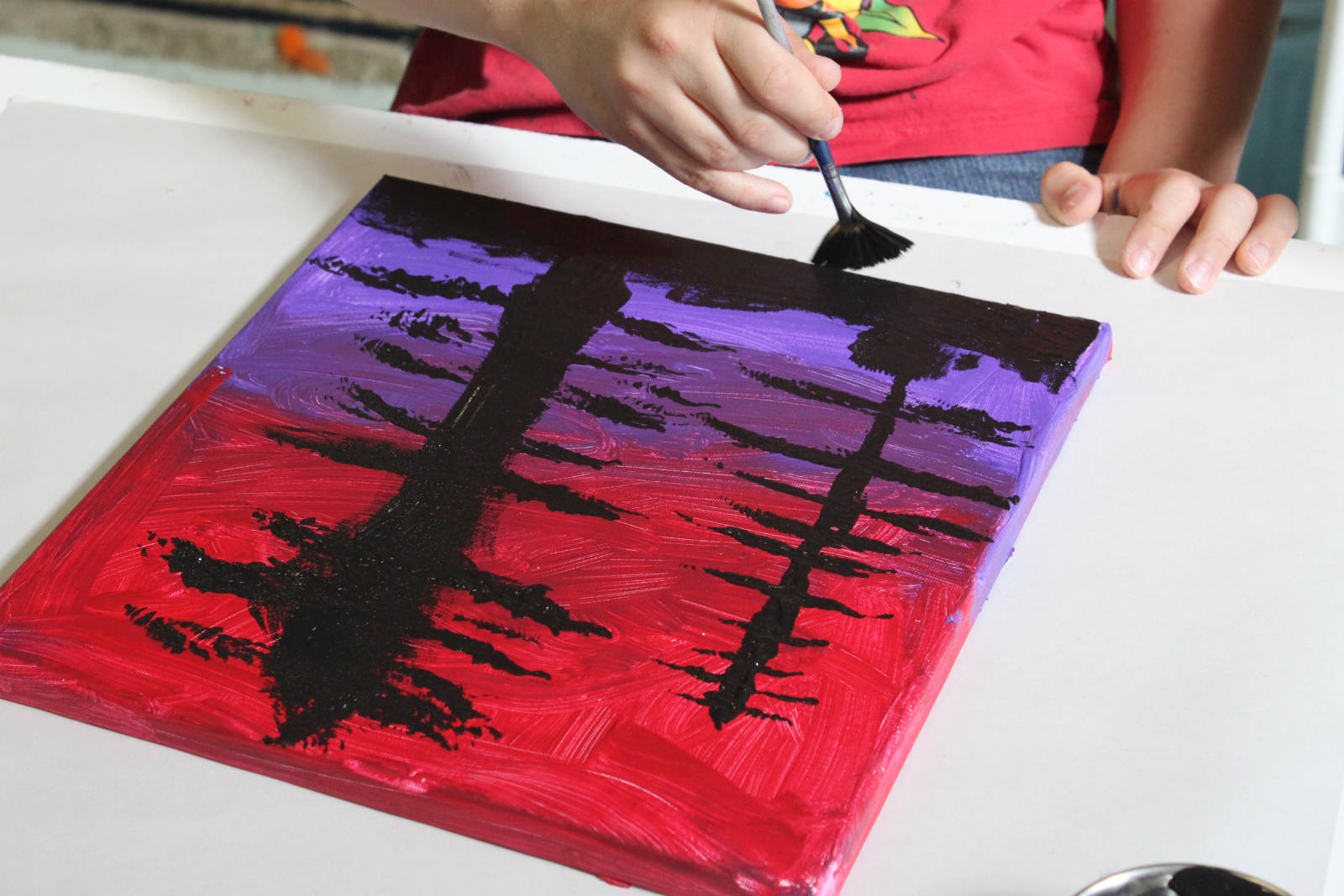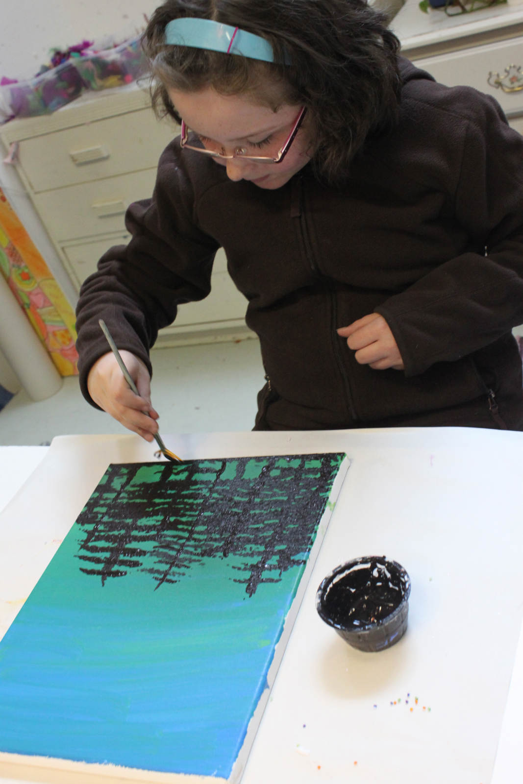 Everybody made a unique little forest. Alyssa made the most delicate, wispy evergreens. Isla made a thick and sturdy grove, and Carson painted one big tree in the middle. Each child had such a unique style, and each experienced such success.