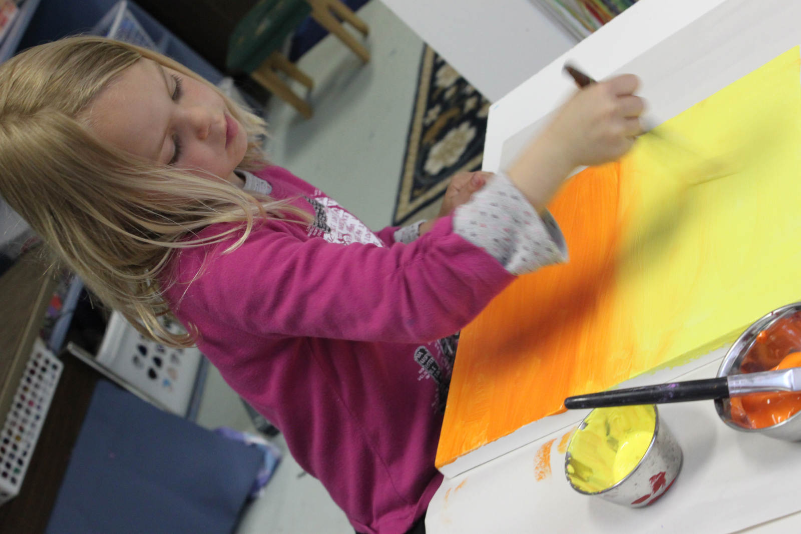Abi painted with long smooth brushstrokes, paying attention to the texture she was creating. Her two colours blended together so well, you can’t tell where one starts and the other one ends. Wonderful job Abi!