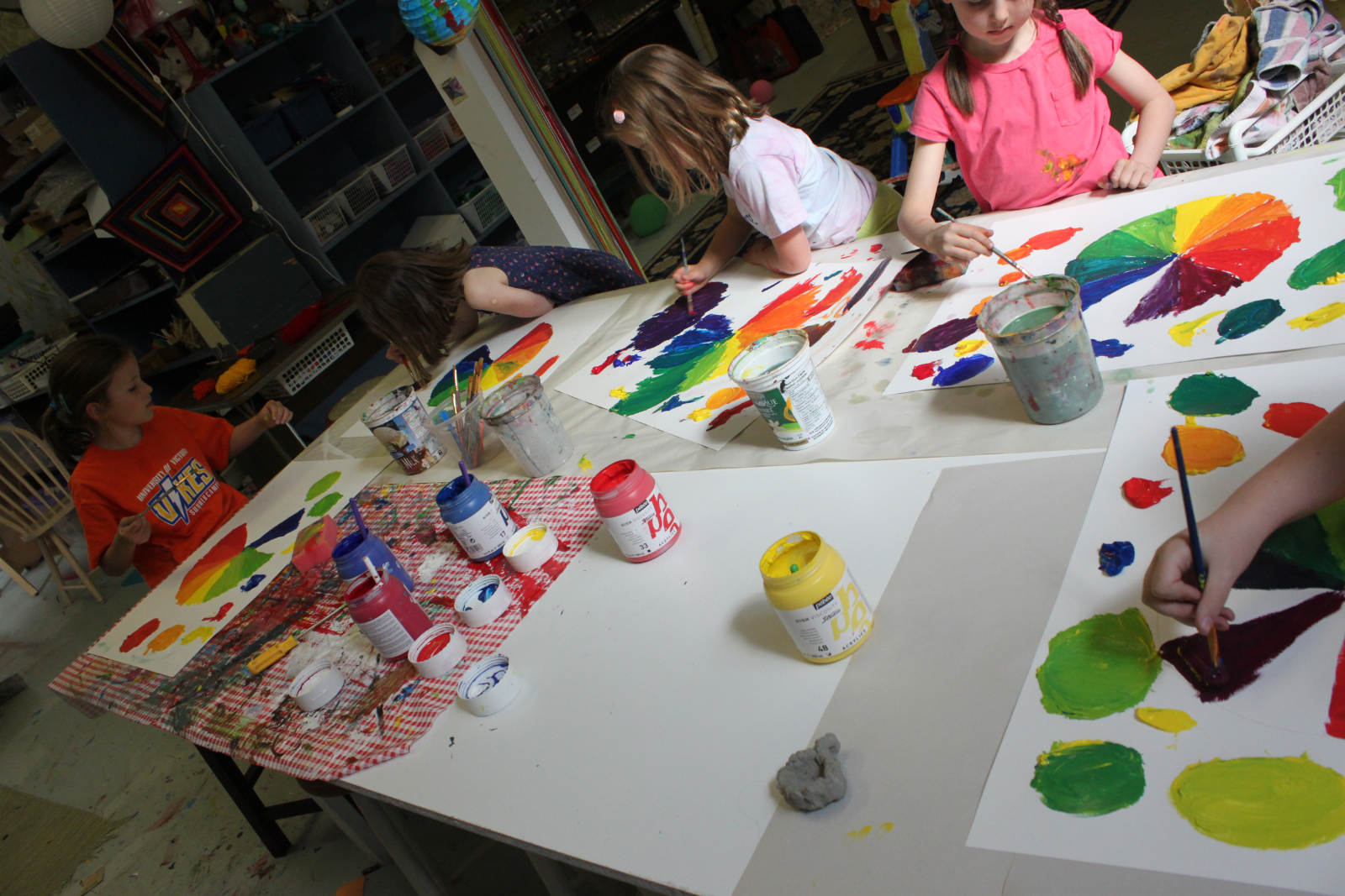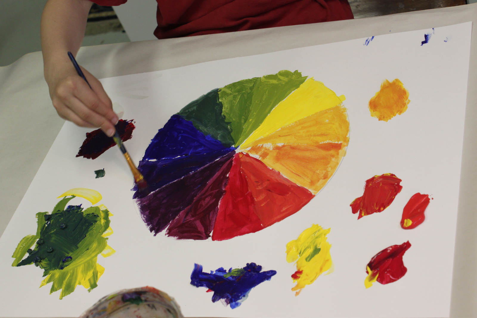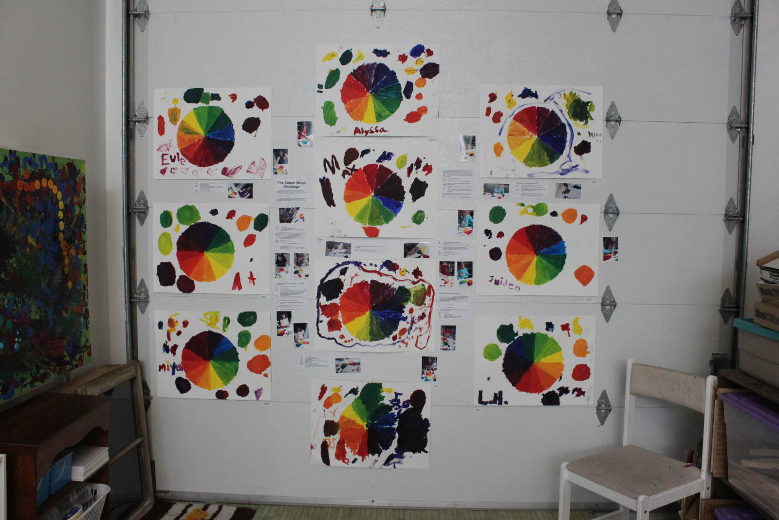 The colour wheel challenge extended to the girls’ class next. Some of the kids had very little experience mixing colours. The potential for a huge leap in understanding colour relationships was abound. They learned how powerful red can be when up against yellow, and the same for blue. The darker colour always seemed to be more powerful.