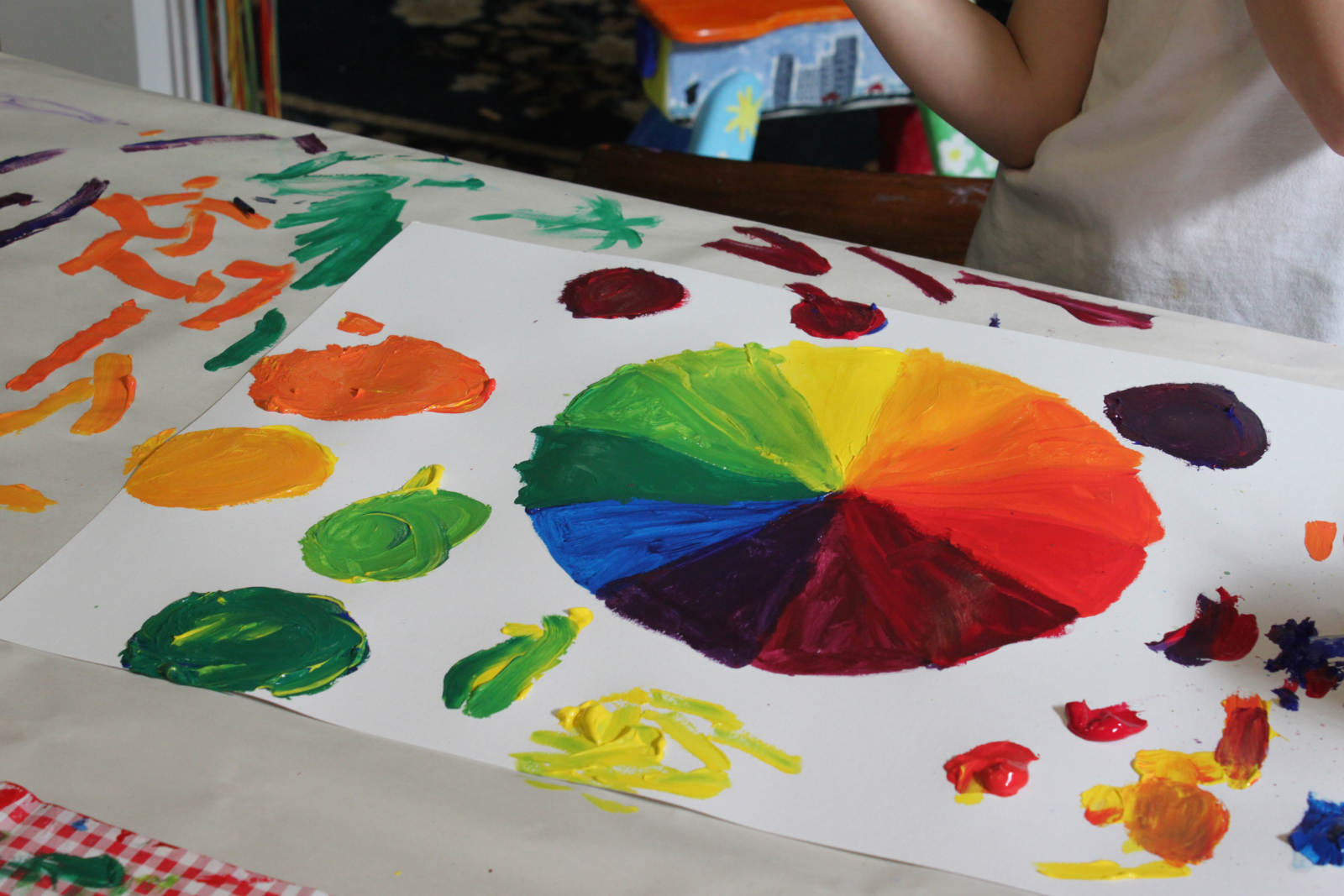 I encouraged them to test their theories, and mix the paint together in different ratios.