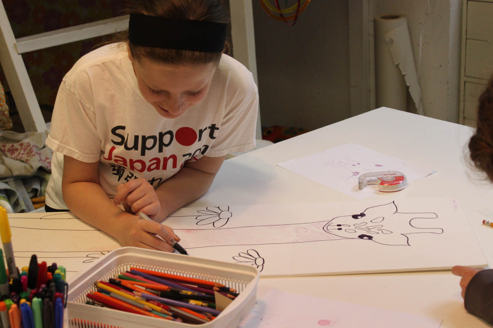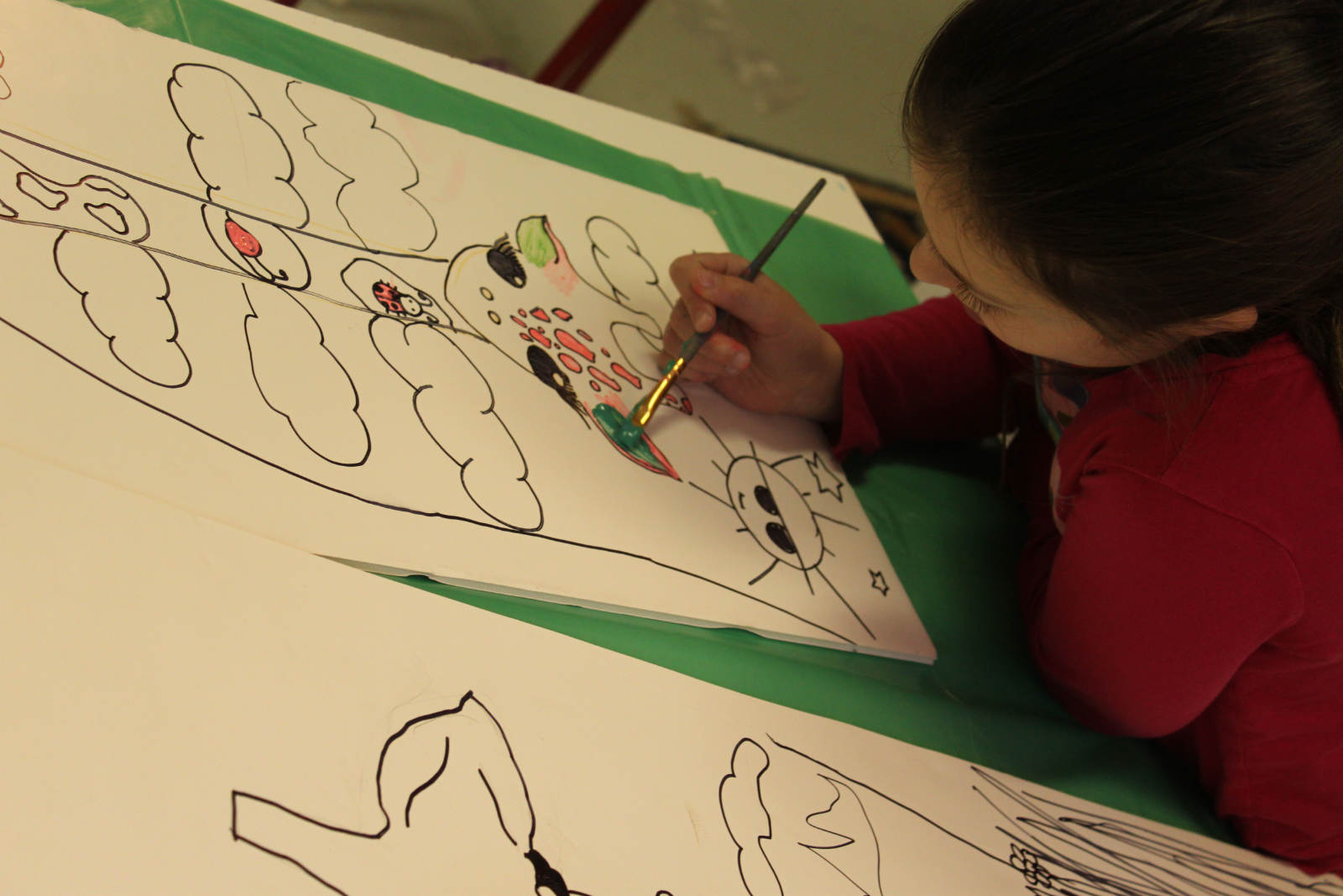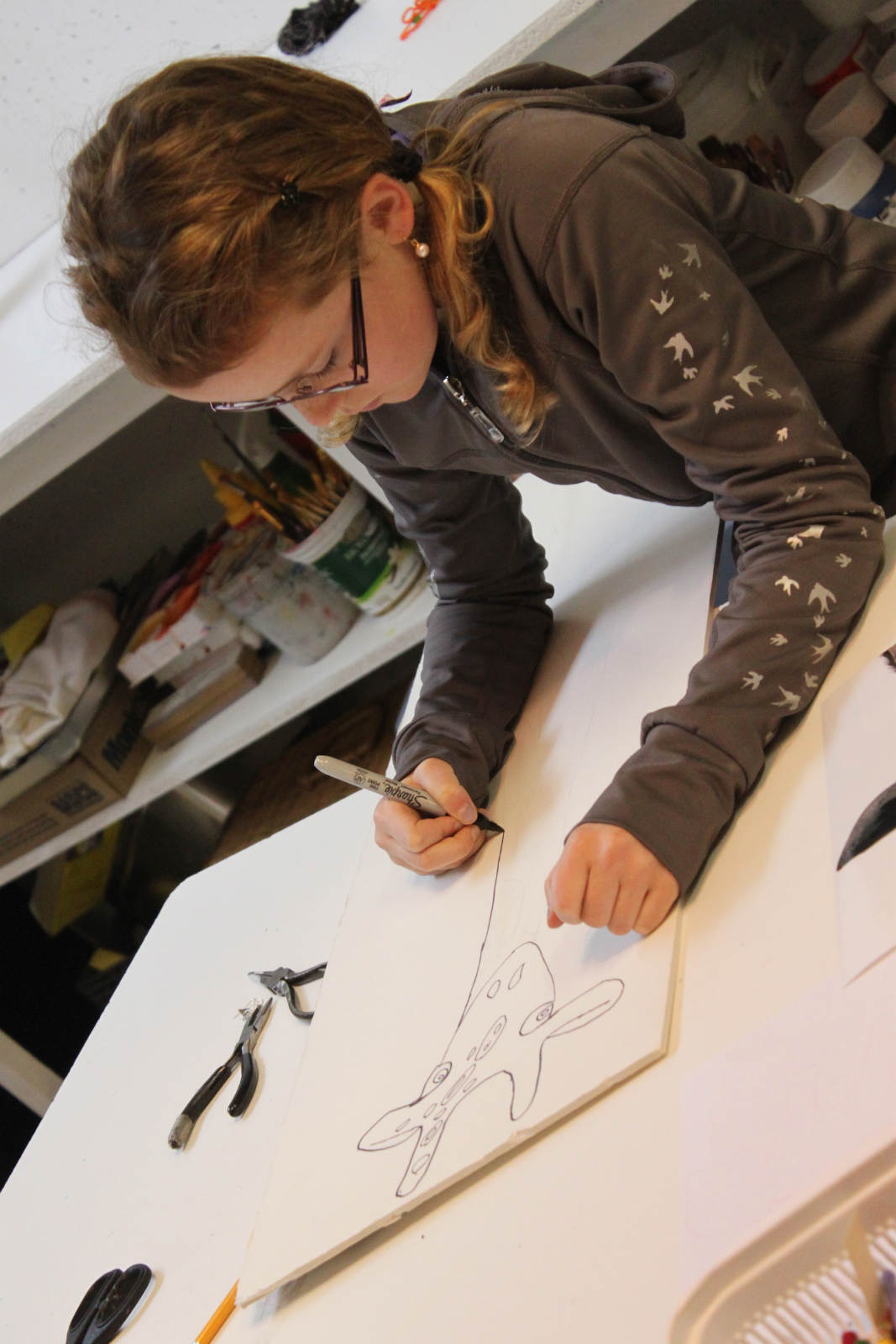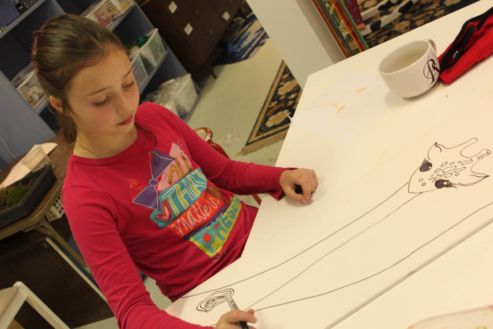 We were inspired by a piece of art we had seen, and used it as a jumping off point for our own long neck giraffe pictures. I had the perfect boards to use for the canvas, and we mixed small amounts of colour in with gloss medium, and used that for our paint. Now THESE are whimsical giraffes. The girls even added inspiring words and phrases the next day with oil pastels.