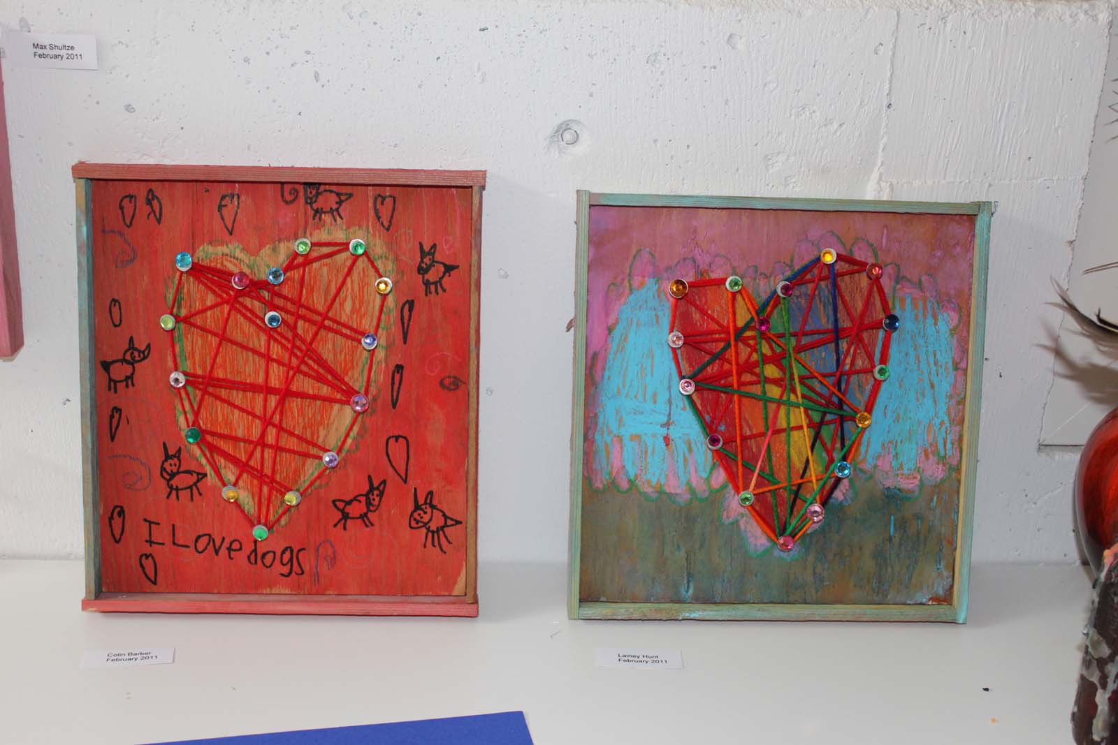 “It’s just about love and things that are red. I like the diamonds. Hammering the nails was my favourite part.” H