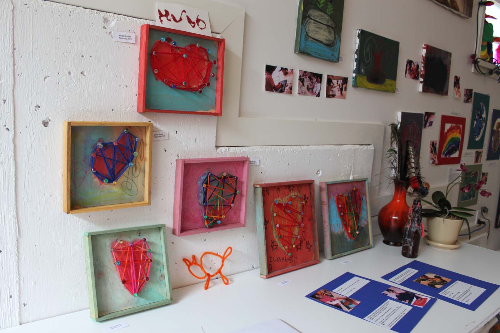 “It’s just a heart. It’s multicolored, I like the diamonds. I drew squiggles. I chose pink for the frame because it’s my favorite colour.” M